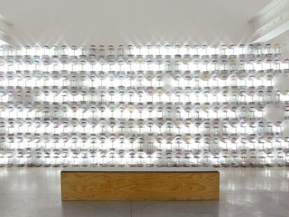 El keniano Evans Wadongo presenta en la feria PAD de Londres su diseño de lámpara solar en una instalación que une moda con ingeniería