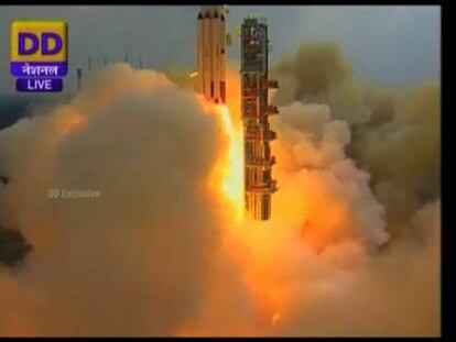 El lanzamiento de la misión espacial MOM, concebida como un ensayo de tecnologías necesarias para la exploración interplanetaria, ha sido efectuado esta mañana