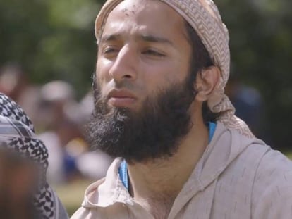 Khuram Butt aparece en las imágenes rezando junto a un grupo que porta una bandera negra adoptada por grupos extremistas