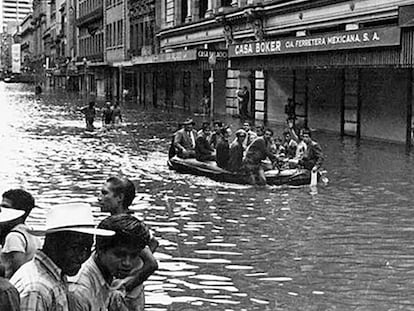 La llaman “la última gran inundación” y cubrió varias zonas de la cuenca del Valle de México. En el Centro Histórico, el nivel de agua acumulada fue tan alto, que la gente tuvo que usar lanchas de madera y balsas de hule para trasladarse