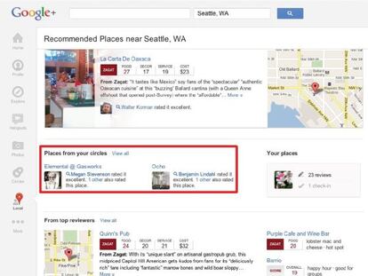 La red social de Google añade una pestaña a su menú para encontrar los lugares que recomiendan los contactos