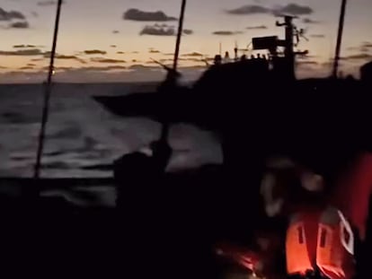 La misión, en la que viaja EL PAÍS, afirma que una embarcación militar rodeó varios barcos y desactivó de forma remota los sistemas de comunicación