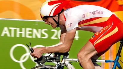 El español prueba unas nuevas zapatillas para optar hoy al oro en la crono del Mundial