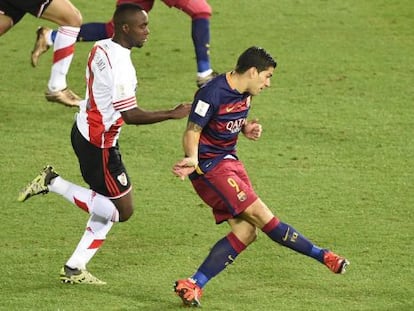 Tres goles del uruguayo dan la victoria a los de Luis Enrique, que se imponen al Guangzhou con las ausencias de Messi y Neymar