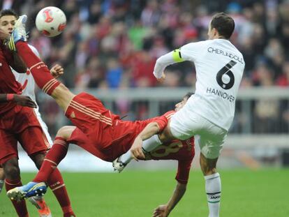 El medio, puesto en tela de juicio por los 40 millones que costó, marca de tijereta su primer tanto con el Bayern de Múnich