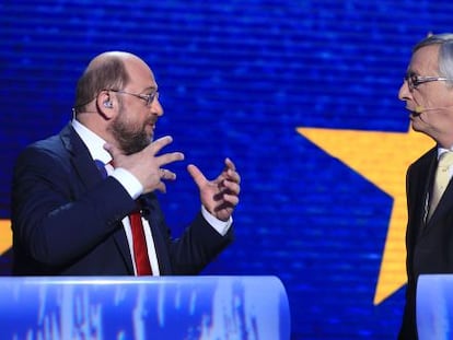 Los dos favoritos para presidir la Comisión Europea advierten contra el voto populista Jean-Claude Juncker y Martin Schulz se encuentran con periodistas de cinco medios europeos