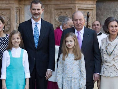 Los Reyes de España, Felipe VI y Letizia, así como sus hijas, la princesa Leonor y la infanta Sofía, y los Reyes eméritos han asistido este domingo, como cada año, a la misa que se celebra en la Catedral de Palma con motivo del Domingo de Resurrección