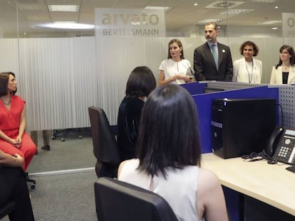 Felipe VI y la reina Letizia visitan las instalaciones del servicio del 016 en Madrid tras el acuerdo político