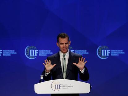 El Rey interviene durante la inauguración de las jornadas del Instituto de Finanzas Internacionales (IIF)