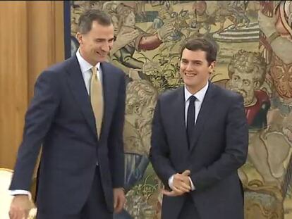 Ciudadanos, que destaca el papel del monarca frente al soberanismo, le traslada a Felipe VI un mensaje fundamental: "Los españoles han pedido cambio y también han votado diálogo"