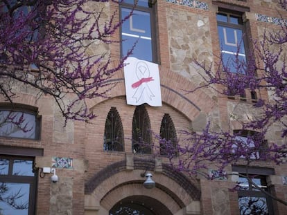 Los emblemas que denuncian la situación de los presos lucen en todo tipo de edificios de la Generalitat