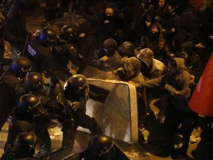 Tensión entre manifestantes y Mossos d'Esquadra a las puertas de la Cámara catalana. El Govern insiste en la necesidad de aprobar sus Presupuestos para atender las peticiones