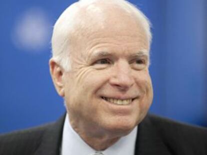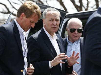 John McCain y la presidenta del comité de Inteligencia del Senado, Dianne Feinstein, acompañan al jefe de Gabinete de la Casa Blanca hasta la prisión cubana