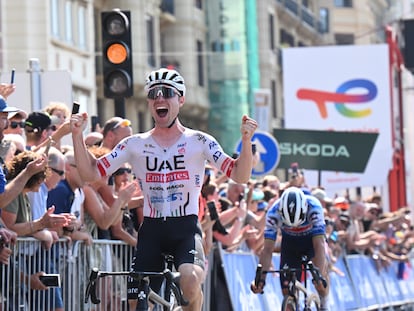El esloveno atacó en tres ocasiones por los caminos pedregosos para poner en apuros a Vingegaard y Evenepoel, etapa de esfuerzo y espectáculo