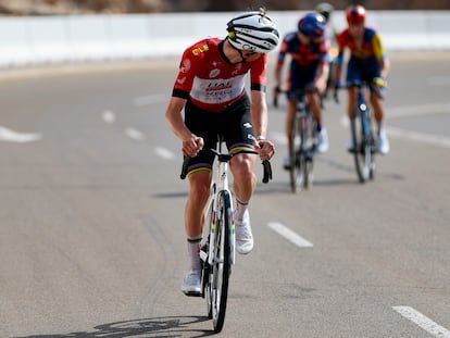 El esloveno ya saca 3m 09s en la general al danés, mientras que Remco Evenepoel, tercero, se descuelga hasta 5m 19s y Carlos Rodríguez ya está a 6m del podio