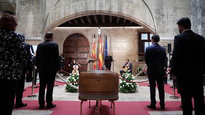 Numerosos ciudadanos, políticos y escritores despiden al premio Cervantes de Oliva en el Palau de la Generalitat, que decretó tres días de luto oficial por su fallecimiento