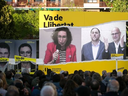 Junts per Catalunya y ERC celebran mítines en Barcelona y Badalona con la presencia a través de vídeos de los líderes encarcelados