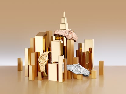 La relojera suiza lanza una versión de su gran icono en tamaño reducido y con textura Frosted Gold