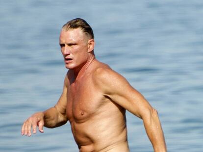 Mientras se adentraba en el mar, comprobé que Dolph Lundgren mantiene ese físico de los ochenta