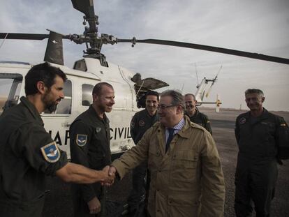 La visita oficial del ministro del Interior se topa con embarcaciones y aparatos aéreos estropeados pese a una inversión de 135 millones