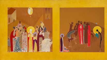 Las obras del pintor navarro alternan un realismo moderno, inspirado por el lenguaje pop, con las inquietudes espirituales. Una muestra en Pamplona revisa ahora la trayectoria de un artista inhabitual