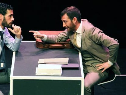 La última obra de Juan Mayorga, interpretada por Juanjo Puigcorbé y Pere Ponce, reflexiona sobre la necesidad de referentes intelectuales para los creadores