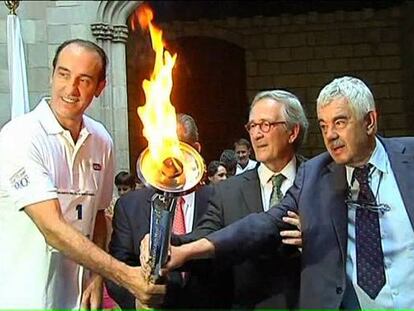 38 deportistas y personalidades recorren la ciudad en un relevo de antorchas Xavier Trias: "Maragall es el alcalde olímpico por excelencia"