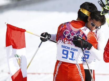 Roberto Carcelén llegó 28 minutos detrás del campeón de esquí en la modalidad cross country, que lo esperó en la meta para abrazarlo