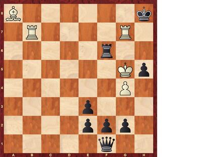 Parece imposible que, con tres peones negros coronando, las blancas puedan ganar, pero lo imposible no existe para el genial compositor