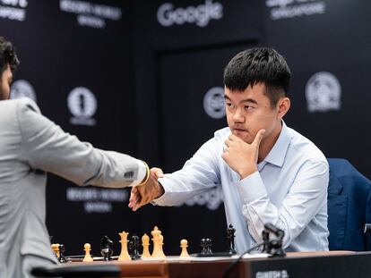 El chino, actual campeón, está igualado con el indio Gukesh (3-3) tras seis partidas de las catorce previstas en el Mundial de Singapur