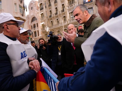 Dirigentes de organizaciones que protestaban ante el Congreso evitan aparecer junto al diputado de Vox, que se encaró hace un año a los agentes que protegían la sede del PSOE
