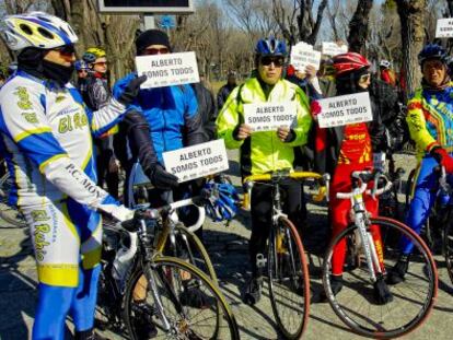 Miles de personas se reúnen en una marcha en bicicleta en la plaza del Ayuntamiento de Pinto para mostrar su apoyo a Alberto Contador
