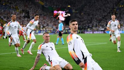 La selección anfitriona derrota a la danesa y espera a España en cuartos tras un partido que tuvo que ser suspendido durante media hora por el diluvio y la fuerte descarga eléctrica que se vivió en Dortmund