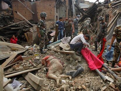 La falta de medios y las réplicas del seísmo complican la búsqueda de supervivientes y la atención a los heridos en Nepal y desatan escenas de pánico