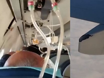 Un pasajero muestra el interior de la nave antes del siniestro en el que murieron al menos 38 personas que viajaban de Azerbaiyán a Rusia el 25 de diciembre