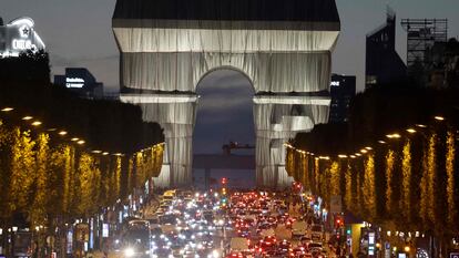 Reduciendo ilusoriamente la escala del Arco del Triunfo, la obra de Christo y Jeanne-Claude en París nos transporta al universo de los niños que reposicionan trastos y juguetes para crear ciudades efímeras en las que les gustaría vivir de verdad