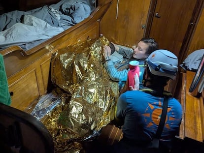 La ONG española Open Arms salva a medio centenar de personas de una patera a punto de hundirse, entre las que había una embarazada y un bebé. EL PAÍS presenció la operación