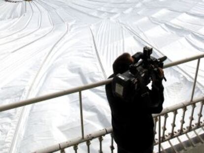 El incidente, ocurrido de madrugada, no causa víctimas ni daños en la plaza El proyecto estaba siendo sometido a las últimas pruebas antes de su estreno este jueves Los técnicos de Patrimonio no detectan desperfectos en la estructura arquitectónica
