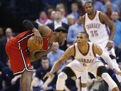 Los Heat suman su 26º triunfo seguido, ante Charlotte (109-79) y sin Wade, lesionado Durant, Westbrook e Ibaka imponen su ley ante Portland (103-83) Minnesota cae ante Chicago (97-104) con 15 puntos de Ricky