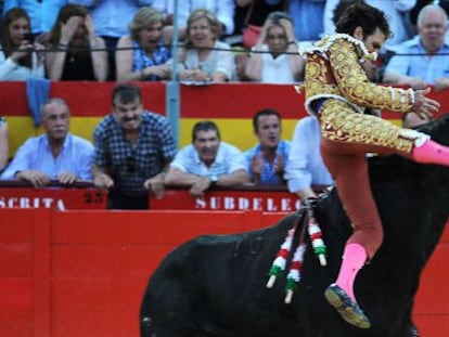 El diestro sufrió una espectacular voltereta en la corrida del pasado jueves en Granada