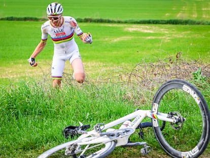 El esloveno campeón del mundo remonta para superar a Pidcock y llevarse en la llegada a meta en solitario su tercera Strade Bianche