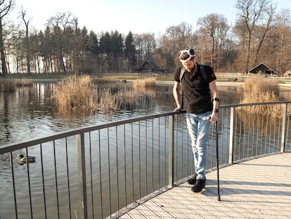 El holandés Gert-Jan Oskam, de 40 años, quedó paralizado tras un accidente en bicicleta y ahora puede subir escaleras con muletas