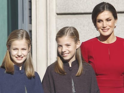 Aunque trataron de pasar desapercibidas, la esposa de Felipe VI, la princesa Leonor y la infanta Sofía se han dejado ver en un avión comercial con destino a Italia