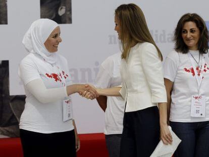 Doña Letizia bromea con el presidente de Cruz Roja en Filipinas, que confundió su nombre Agradece a los 210.000 voluntarios de la organización su ayuda sin distinciones