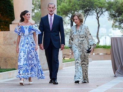 Felipe VI y doña Letizia, acompañados por la reina Sofía, reciben a más de 500 invitados en la tradicional recepción a la sociedad civil balear que se cita, por segundo año consecutivo, en el palacio de Marivent