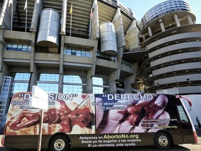 La organización responsable de la campaña afirma que tiene el permiso legal para circular aunque al Ayuntamiento no le consta. El vehículo muestra imágenes de supuestos fetos ensangrentados