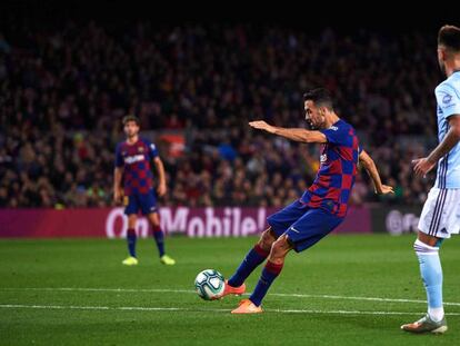 El delantero azulgrana resuelve con tres goles a balón parado, dos de falta y uno de penalti, un partido anodino ante el alicaído Celta