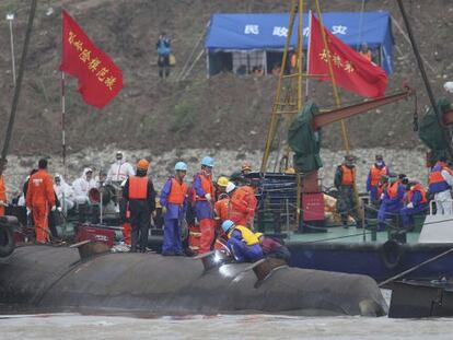 Los equipos de rescate han localizado ya 18 cuerpos, 426 personas siguen desaparecidas en el río Yangtsé tras el naufragio del "Estrella de Oriente"