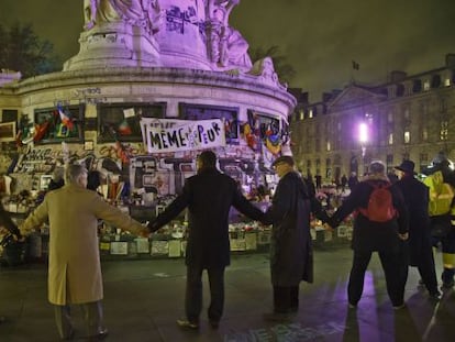 Ciudadanos y turistas visitan la Plaza de la República para recordar a las víctimas