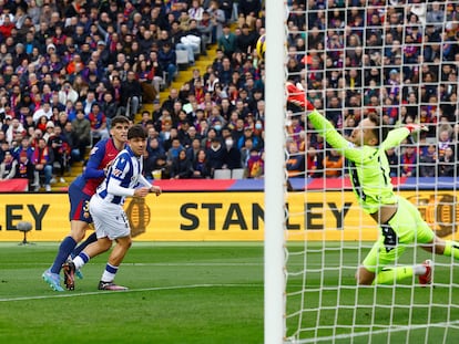 Los azulgrana golean a una Real que no levantó cabeza tras la expulsión de Aritz en el 17 | Gerard Martín, Marc Casadó, Araújo y Lewandowski firmaron los goles locales | Javi López, después del encuentro: “Tras la expulsión, el partido nos cambió por completo”